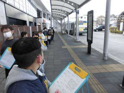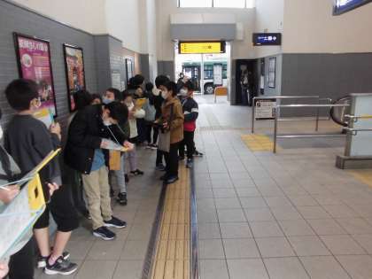 0201 4年 総合的な学習の時間 「町調べ1」 公開日 2023/02/01 更新日 2023/02/01 4年生 事前に町調べをする計画を立てたので、4つのコースに分かれて町調べをしました。駅やバス停などの人通りが多いところや商店街や納所の交差点付近などの交通量の多いところへ出かけました。目が不自由な人が安全に歩くことができる場所や危険な場所など、気づいたことをプリントにまとめたり写真に記録したりしました。