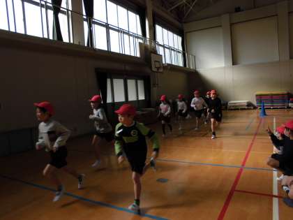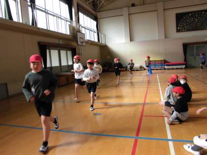 体育の学習ではジョギングをしています。持久走大会に向けて