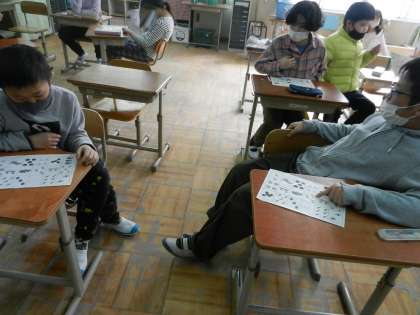 好きな数字を書き込み、英語で数字を言ってゲームを進めます。