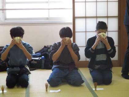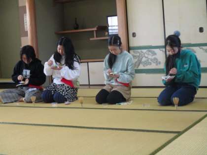 部活動も1年間の活動を終え、最終の回をむかえています。茶道部は今日が最終日でした。たくさんの先生に見守られながらおいしくお菓子をいただき、お茶を点てていました。作法もしっかりと身に付けることができました。