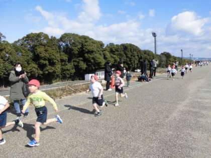 子どもたちは自分のペースで力いっぱい走り切っていました。