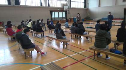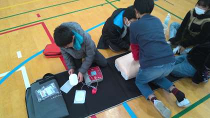 伏見消防署の方に来ていただき,救命講習を行いました。心肺蘇生法やAEDの使い方などを教わりました。人形を使って,実際と近い形で学ぶことができました。いざという時には,この学習を生かしてほしいなと思います!