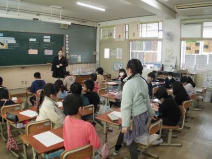 昨日、今日と、2年生は、栄養教諭の笘篠先生に食についての指導をしてもらいました。