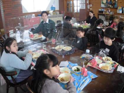 2年2組、3組は来週以降にランチルームで給食を食べます。
