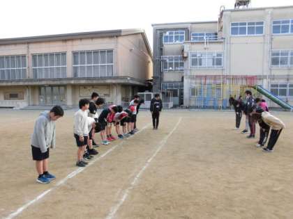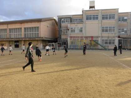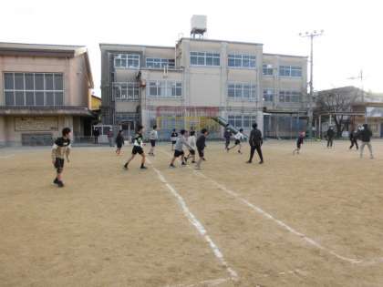同じくサッカー部も今日が活動の最終日でした。雪がちらつく寒い中でしたが、6年生対先生方での試合をしました。うまくパスをつないだり、先生方の足の間をぬく上手なプレーも見られました。結果は引き分け。寒い中、みんな汗だくになって楽しみました。