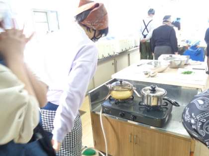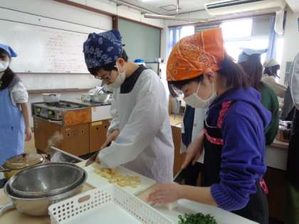 自分達で調理したご飯とお味噌汁、おいしかったですね。準備や後片付けも、手際よく、グループで協力して実習することができました。