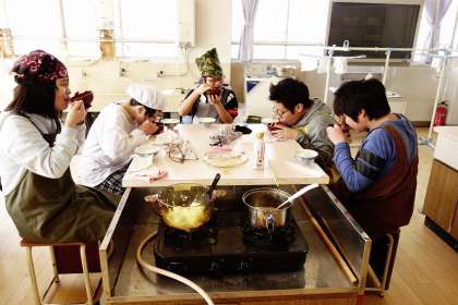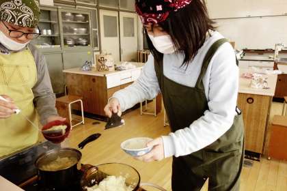 家庭科室にいいにおいが広がりました。ご飯とおみそ汁のできあがりです。