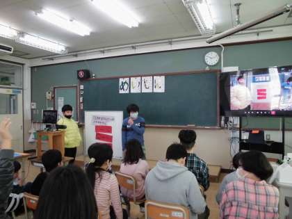 明親小学校からは、クイズと合奏です。