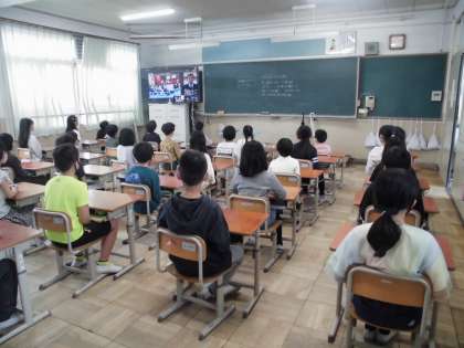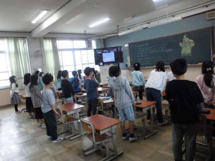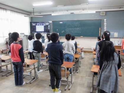 どの教室の子どもたちも、姿勢正しく、きちんとした態度で式に臨みました。