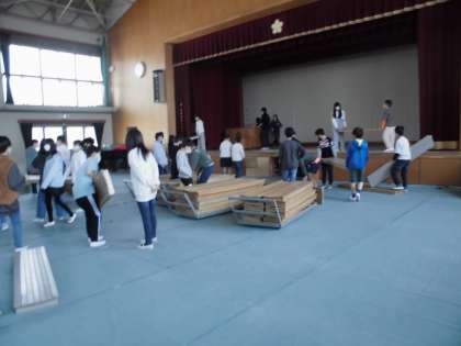 昨日行われた入学式の後片付けをしました。
