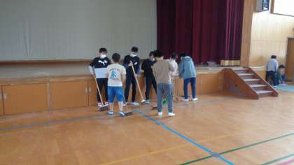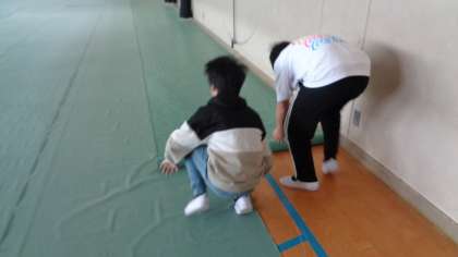 長椅子を運んだり、モップをかけたり、床をほうきで掃いたり、シートを巻いたりなど...周りの様子を見ながら自分で考えて行動することができました。