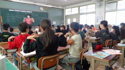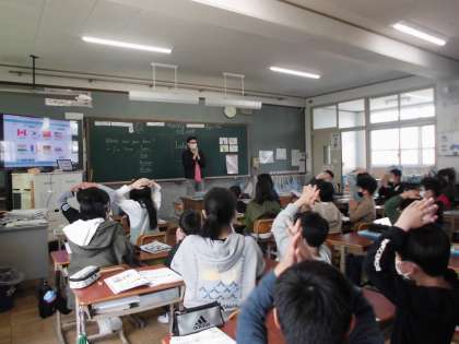 0417 6年生 外国語活動 公開日 2023/04/17 更新日 2023/04/17 6年生 外国語活動の時間です。今日は、デロン先生と学習しました。 「This is me.」の単元です。国の名前の言い方を、楽しくゲームをしながら発音しました。