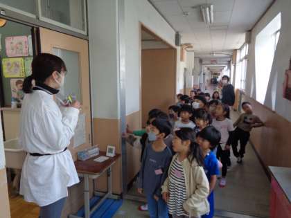 校長先生や養護教諭の高木先生、給食調理員さんにも挨拶をしました。