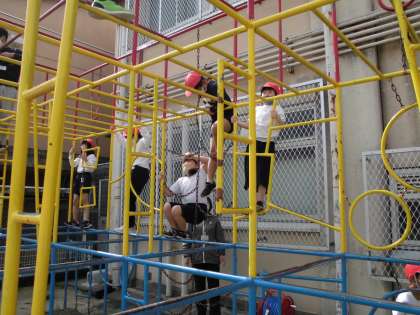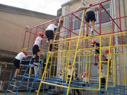 体育の学習で登る練習をしてから、休み時間も遊べるようになります。