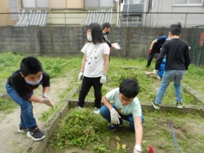 雑草の長い根っこにびっくりしたり、虫を見つけたりして、楽しみながら草抜きをがんばりました。
