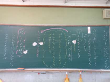 今日は人権朝会がありました。テレビ会議で、校長先生のお話を聞き、人を大切にすることについてクラスで話しました。