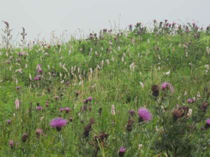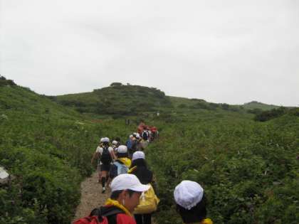 7月22日(水),前日からの雨もあがり5年生はバスで伊吹山へハイキングに行きました。バスで伊吹山の中腹まで進み,そこからは1時間半ほど歩いて山頂を目指しました。途中,普段見ることのできない高山植物をたくさん見つけたり,虫もみつけたりして,楽しい道程でした。山頂では,いい景色の中で友達とお弁当を食べました。