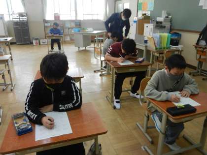 みんなで一緒に学習する時間と1人1人自分の課題に取り組む時間があります。