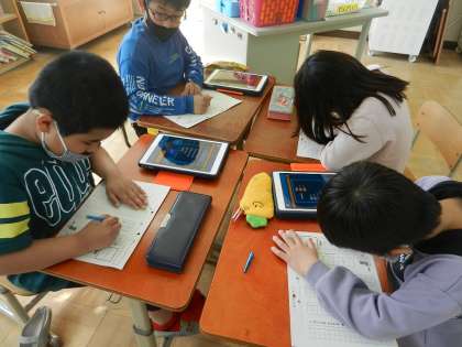 プリントを使った学習、タブレットを使った学習、カードやおはじきなどを使った学習・・・。自分に合った方法で、学習します。