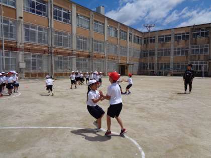 0508 1年 体育「体ほぐし運動」パート2〜どんじゃんけん〜