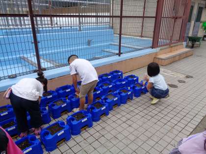 「まだ、芽がでてないなあ。」と、植木鉢に水をあげながら水やりをしていました。