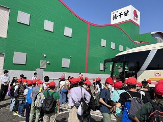 0517 6年修学旅行☆梅干し館に到着! 公開日 2023/05/17 更新日 2023/05/17 令和5年度修学旅行 次の目的地、梅干し館に到着しました。 大きな梅干しの入り口から入って、工場見学をします。