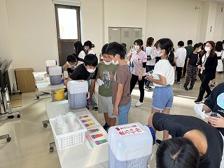 0517 6年修学旅行☆梅干し館 梅干し作り体験 公開日 2023/05/17 更新日 2023/05/17 令和5年度修学旅行 作り方を教えてもらい、 いよいよ自分だけの梅干し作りの体験です。 シロップの味を考えながら調合し、梅干しを付けていきます。