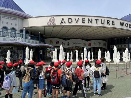 0518 6年修学旅行☆アドベンチャーワールドに到着 公開日 2023/05/18 更新日 2023/05/18 令和5年度修学旅行 10時の開園前に到着しました。 開園を今か今かと待っていました。 入場後、グループで行動します。