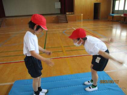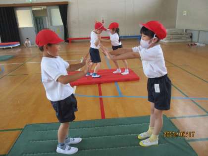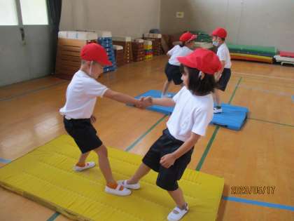 手押し相撲やお尻相撲を楽しんでいるところです。