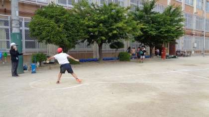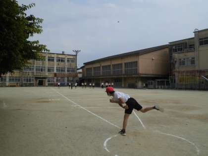 雨で延期になっていたソフトボール投げをしました。 みんな力いっぱい投げました。