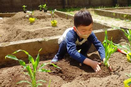ナス、ピーマン、ミニトマト、トウモロコシ。