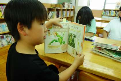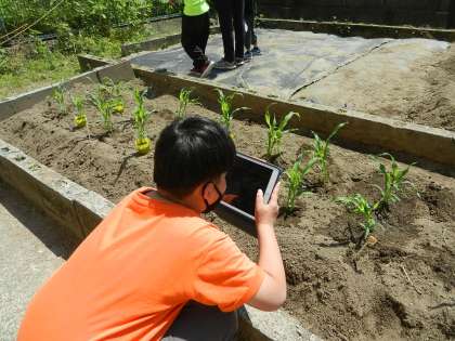 iPadや図書室で育て方を調べる学習もしました。
