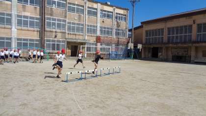 0531 6年生 体育 公開日 2023/05/31 更新日 2023/05/31 6年生 「ハードル走」の学習をしています。 足をあげてしっかりハードルをまたぐこと、ハードルに近いところで踏み切らないようにすること、しっかり前傾姿勢になることなどを意識して走り、少しでもタイムを伸ばせるようにみんな頑張っています!