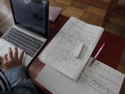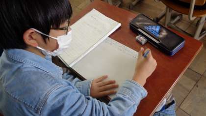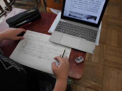 修学旅行の時に見学した「稲むらの火の館」で見たり学んだりしたことを、しおりを振り返り、もう一度調べるなどしながら、まとめています。そこから日本で起こった災害についていろいろ調べていきます。
