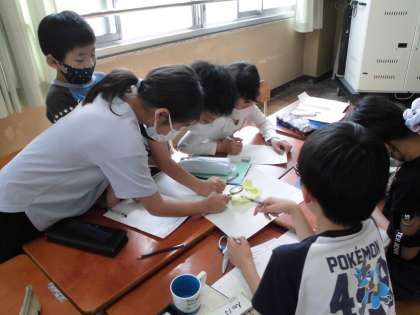 学校の畑で見つけたモンシロチョウの卵から、クラスで育てました。