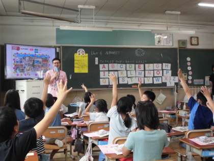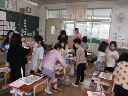 外国語の学習で、デロン先生と一緒に学習をしました。