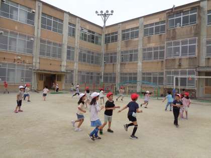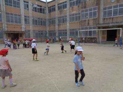 今日の中間休みは、運動場割当でした。外遊びをしたい子どもたちは、外で鬼ごっこをしています。