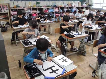 3年生から始まった毛筆の学習も少しずつ慣れてきました。