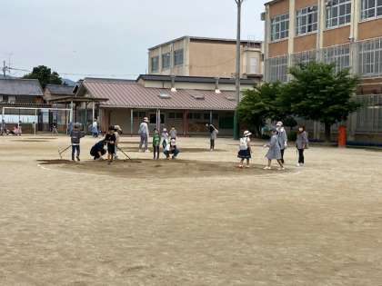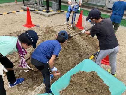 運動場のでこぼこを埋めたりしました。