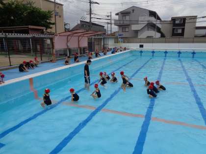 シャワーを浴びたり、プールの入り方を知ったりして、楽しく水泳学習をスタートすることができました。