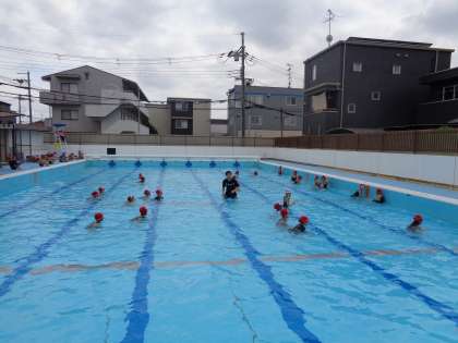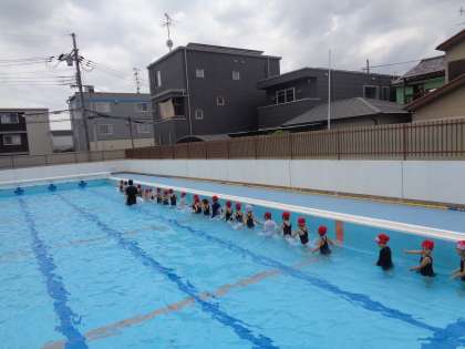 子どもたちは水中を歩いたり、顔つけをしたりしました。