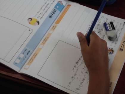 道徳の学習です。「言葉のおくりもの」という資料を読み。男女仲良く生活していくために、どんなことが大切か考え、話し合いました。