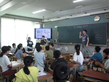 0628 6年生 外国語 公開日 2023/06/29 更新日 2023/06/29 6年生 ALTのデロン先生との外国語の学習です。ジェスチャーゲームをしたり、発音をくりかえしたりしながら、楽しく学習しました。