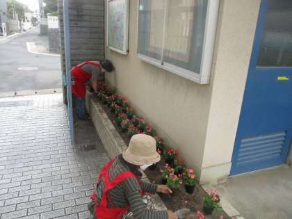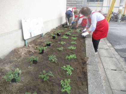 女性会のみなさんが、花壇のお花の植替えをしてくださいました。