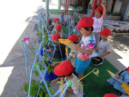 「紫色だったよ。」「ピンクが咲いていた!」と、朝の水やりから教室へ帰ってきた子どもたちが咲いた花の色を教えてくれます。