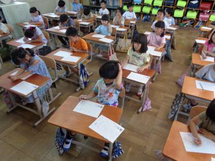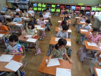 姿勢を正して、鉛筆の持ち方にも気を付けて、「つくし」「いけ」「うた」などのひらがなを書きました。