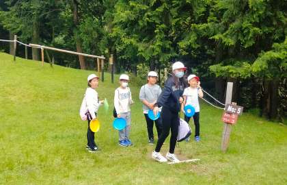 5年 花背山の家 『大空の下で フライングディスク編』 公開日 2023/07/10 更新日 2023/07/10 5年生 大自然に囲まれて、フライングディスクを「えいっ!!」と遠くへ投げます。正直、的にめがけて投げるのはとても難しいです。でも、そんなことより・・・、思いっきり投げられるのが気持ちいい!