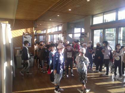 5年 花背山の家 『もうすぐ夕ご飯だよ 編』 公開日 2023/07/10 更新日 2023/07/10 5年生 「先生、おなか減りました・・・」 よしよし、心配しなくても大丈夫だぞ。晩御飯もバイキングだ〜。ぞくぞくと入浴を済ませ、食堂に集まってくる子どもたち。ちなみに食堂でごはん自動おかわり器なるものを発見。すごいんです、これ。本当にふわっとご飯が自動で盛られます。発明した人、すごい。