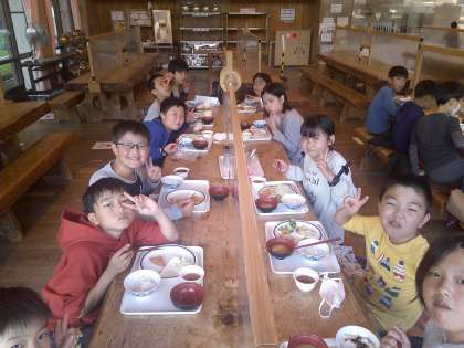 5年 花背山の家 『みんなで食べるとおいしい しかも朗報が 編』 公開日 2023/07/10 更新日 2023/07/10 5年生 こちらもどうぞご覧ください。みんな満足そうです。たくさんおかわりしている子もいました。ここで、子どもたちに朗報が!雨で一旦は中止となったナイトハイクですが、そのあと思った以上にカラッと晴天に。やります、ナイトハイク!やったね。みんな幸運の持ち主!