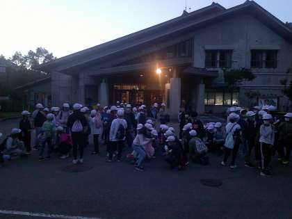 夕ご飯も食べておなかも満足。陽も落ちてきました。いつもとは違う雰囲気になんだか特別感が沸いてきます。もうすぐ山の家は完全に暗闇に包まれそうです。ナイトハイクにみんなドキドキ・ワクワクがとまりません。